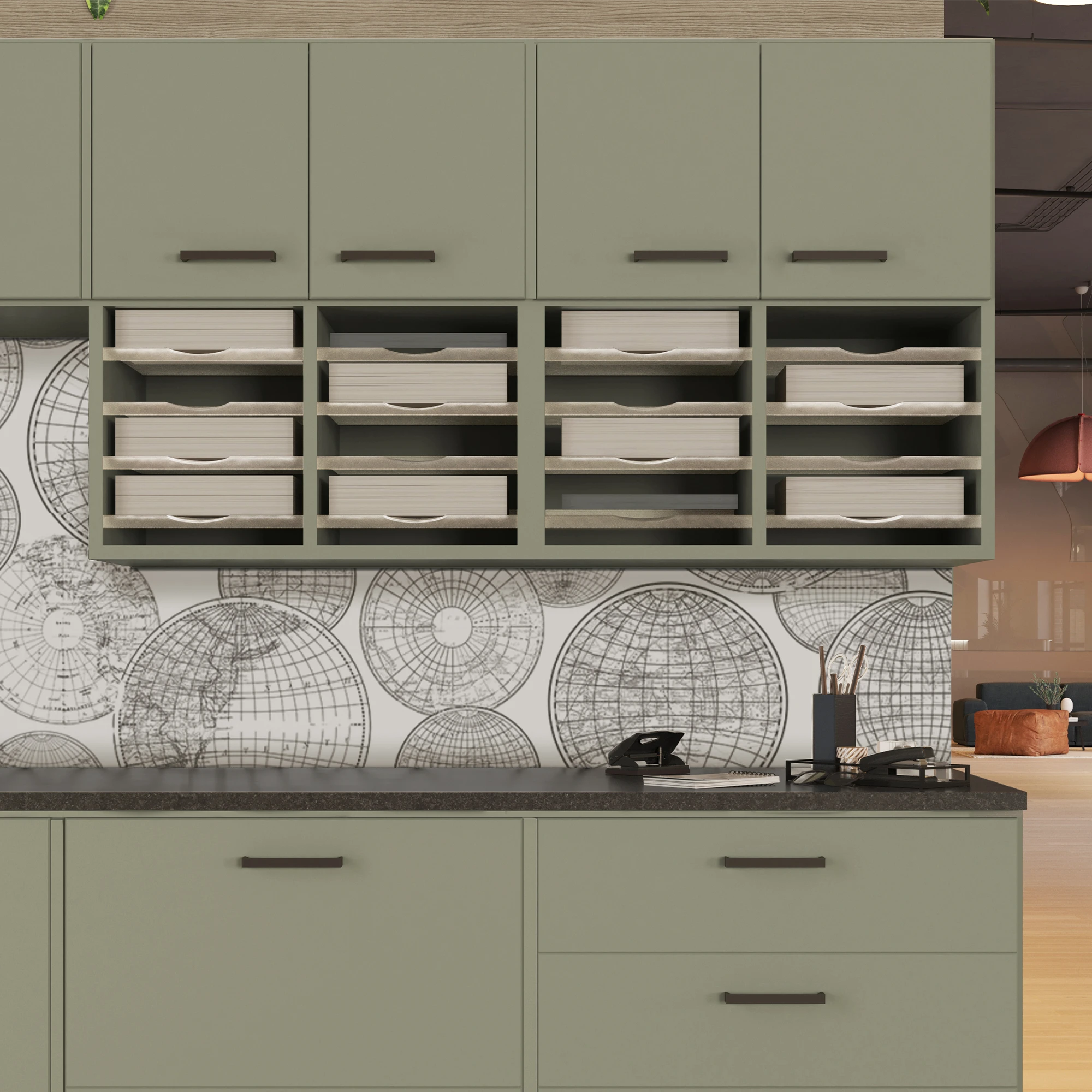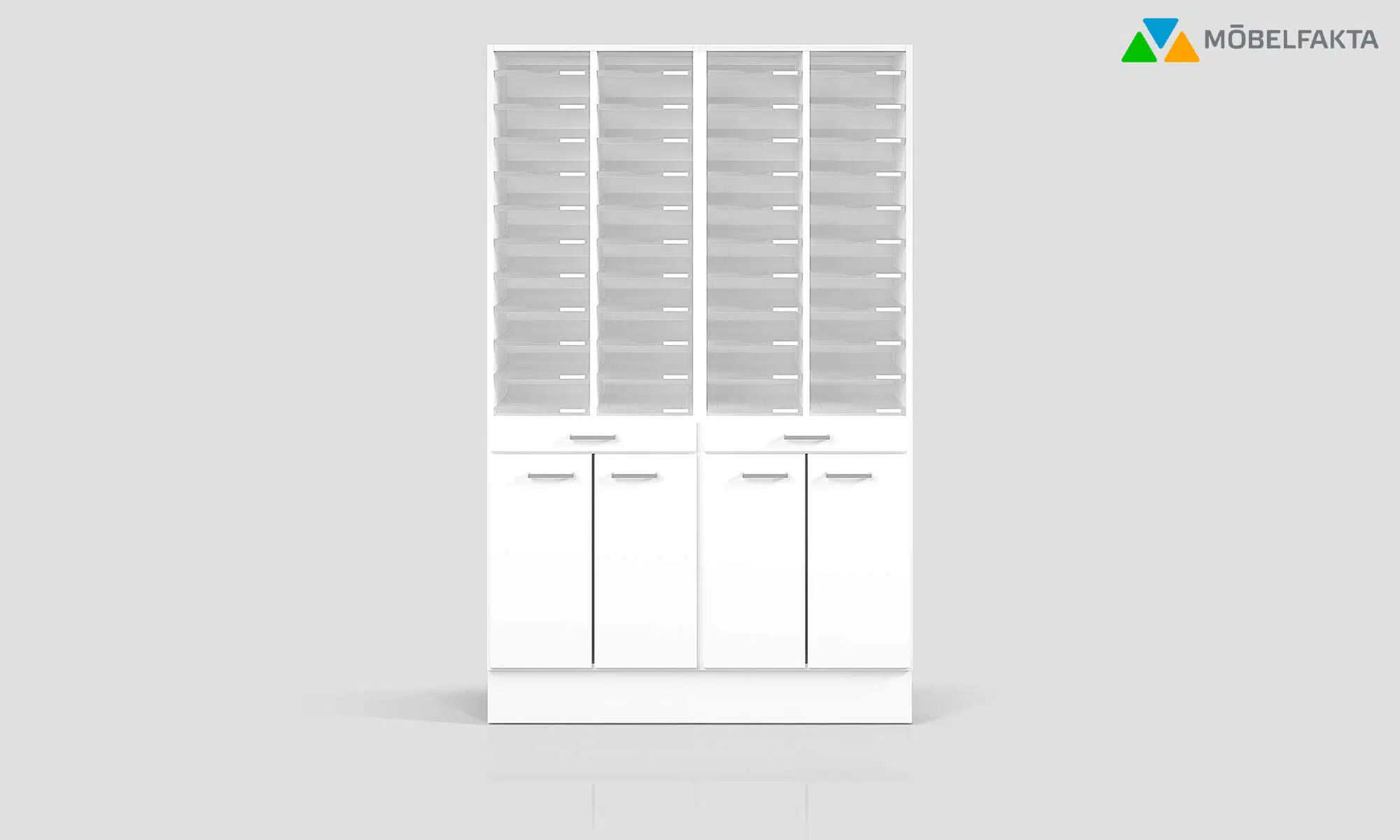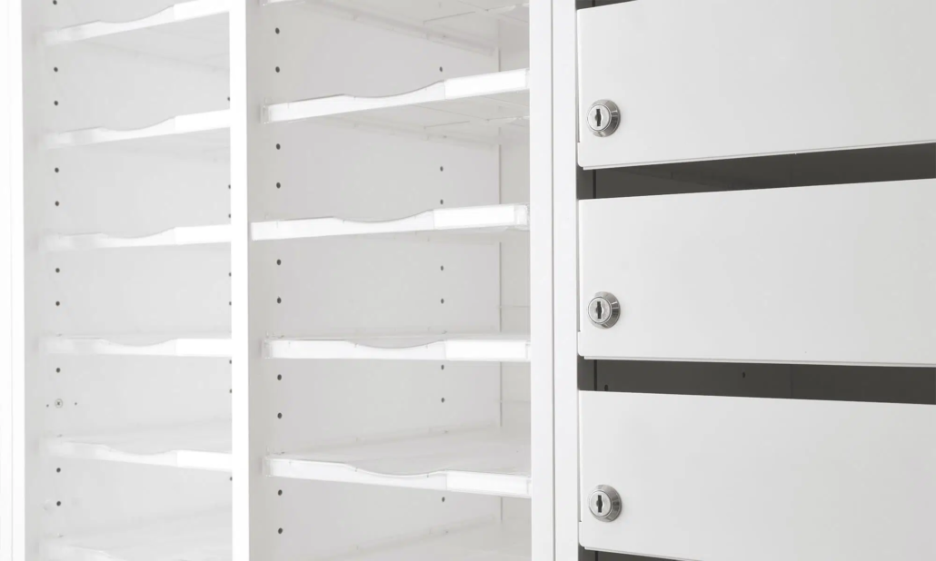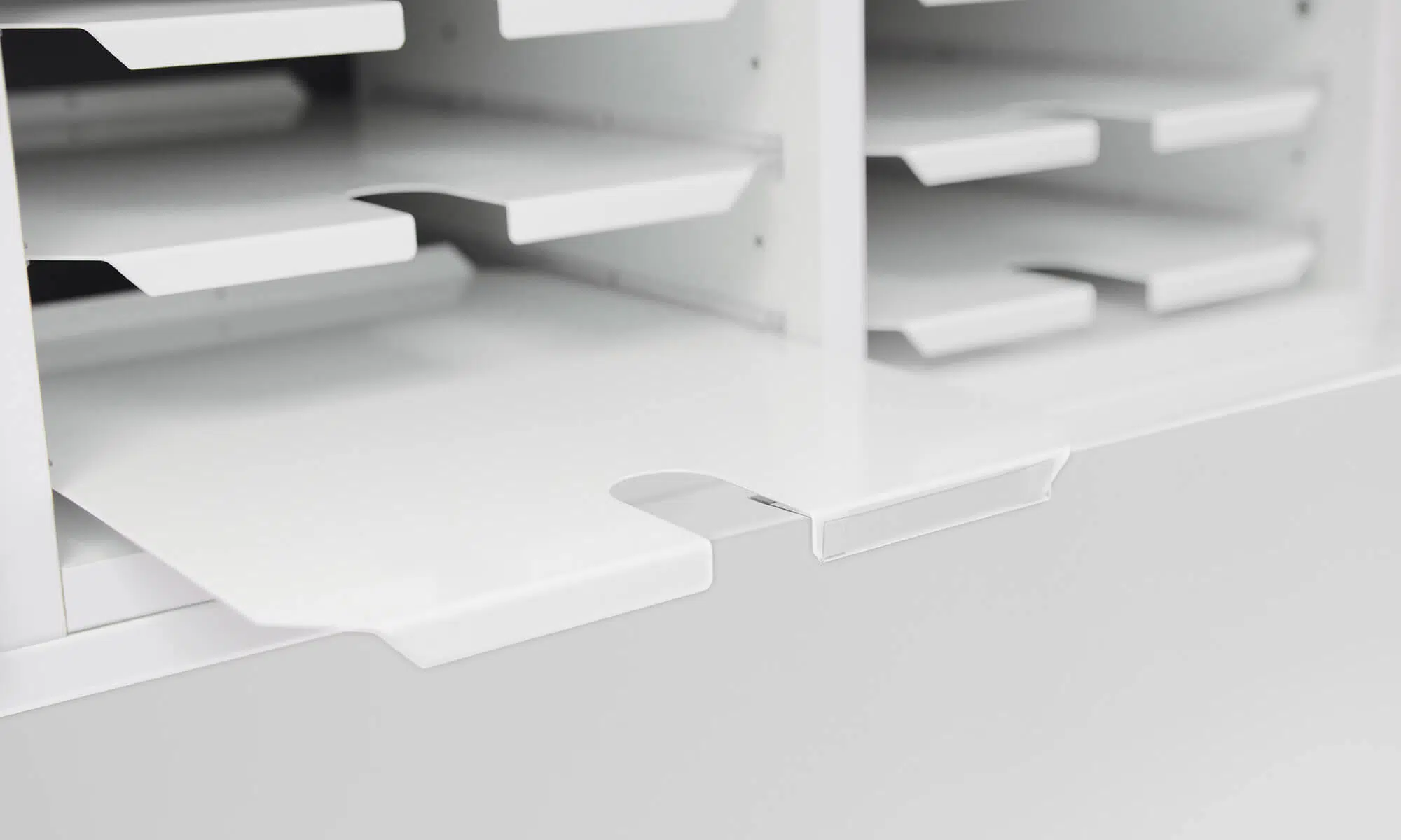 Our best-selling color choice white now includes an extra UV coating as standard on all fronts, such as doors and drawers. This unique UV coating provides a durable, ultra-resistant surface, perfect for use in offices and public spaces.