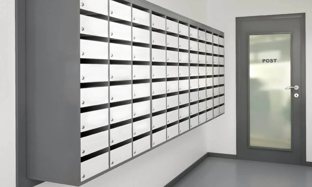 Complete module series for mail sorting with mailboxes and mail shelves