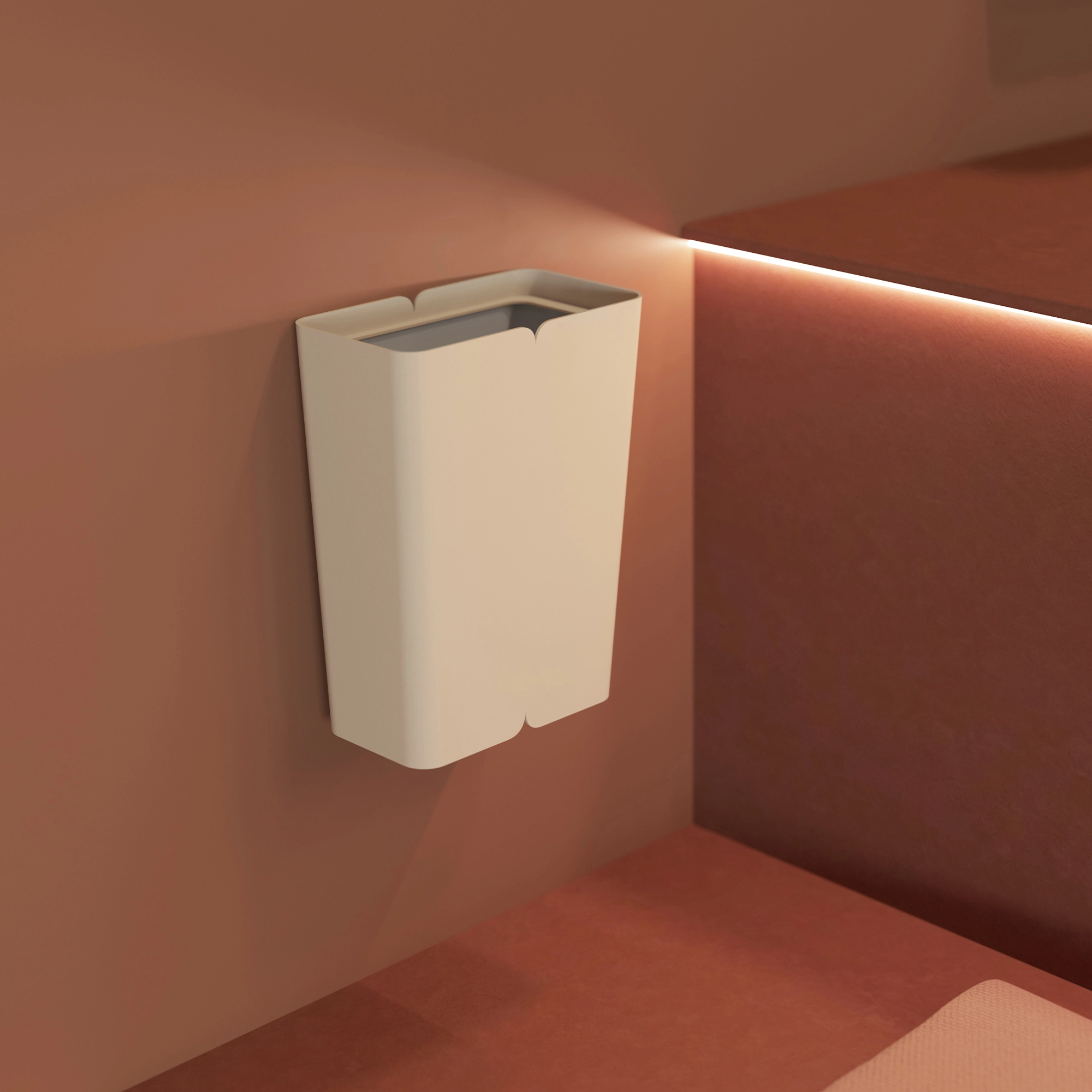 TreCe has together with Tengbom architects developed the recycling unit Hold. As part of this collaboration, Hold mini has seen the light of day. Hold mini is half the size of its big brother Hold. With only one fraction for sorting, and aims to function as a pure wastebasket in conference rooms, hotel rooms, smaller meeting rooms etc. A small and functional bin with one type of inlet and a small container. Hold mini also has a wall bracket, which means that it can be placed on a wall.