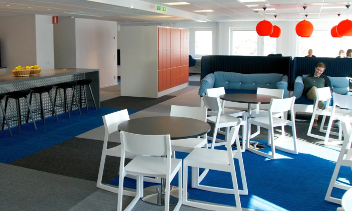The model for the office in Kista has been Microsoft’s office in Amsterdam, a pioneer project in activity-based approach. Heléne Lidström emphasizes the need to adopt a holistic method to an activity-based approach is essential to make it work. Both the location, in the office, technology and people must be included in the development process. Without a well-functioning method of working where technology enables communication and reconciliation, the concept will never work. The new organization also enables more efficient utilization of resources which supports a sustainable development. Because each workplace is flexible and no employee is bound to a particular desk, staff can easily change work environments and parts of the building can shut down, such as during vacations.