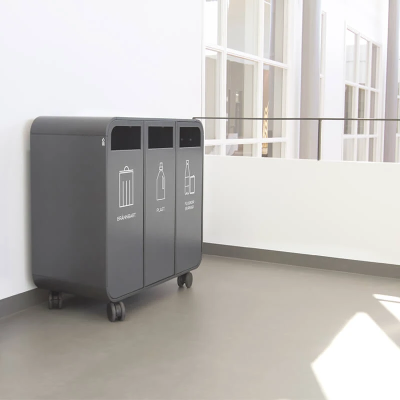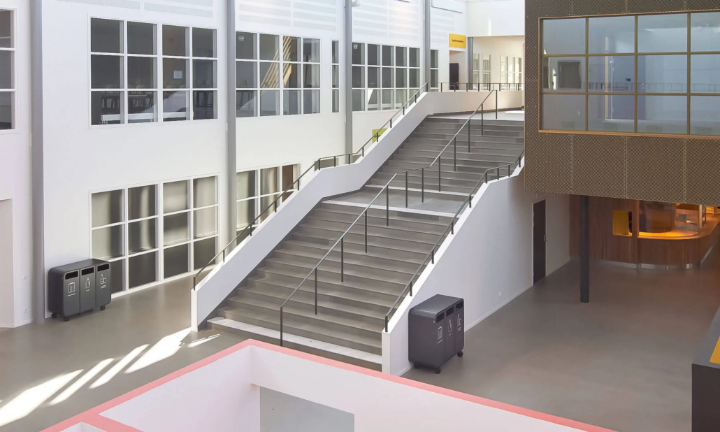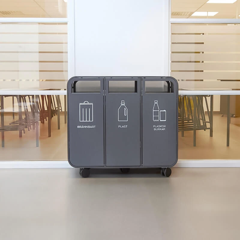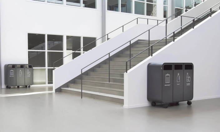 For easy and stylish recycling the product Cloud has been chosen which is a mobile recycling unit with clear symbols and easy emptying. Cloud fits very well in the large and bright rooms, which in addition to classrooms contain a auditorium, a school library, and perhaps the most characteristic; a brain gym!