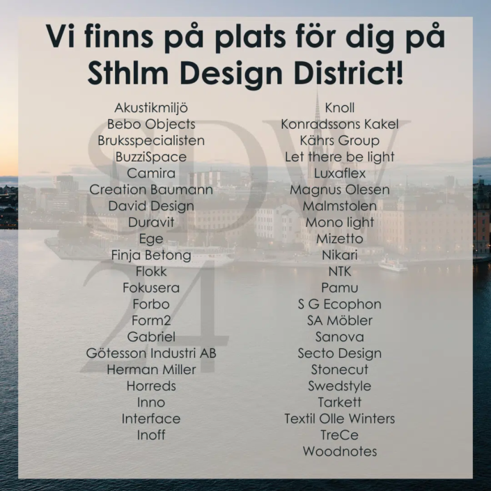 You will find the following companies at either Studio B3 on Barnhusgatan 3 or Stockholm Design District on Rosenlundsgatan 40.