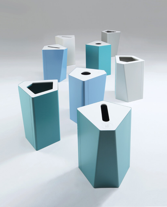 Efter att Annica skissat på olika förslag föll vi alla för Kite. Namnet kommer från formen på locket som påminner om drakarna man flög som liten. Vi såg produktens potential i både design och funktion och beslutade oss för att producera den – en flexibel och användbar miljöstation som fungerar i många olika typer av miljöer och kan anpassas utifrån förändrade behov. Just flexibiliteten och det faktum att du kan placera den som enskild eller i grupp gör att den är lättanvänd och användarvänlig.