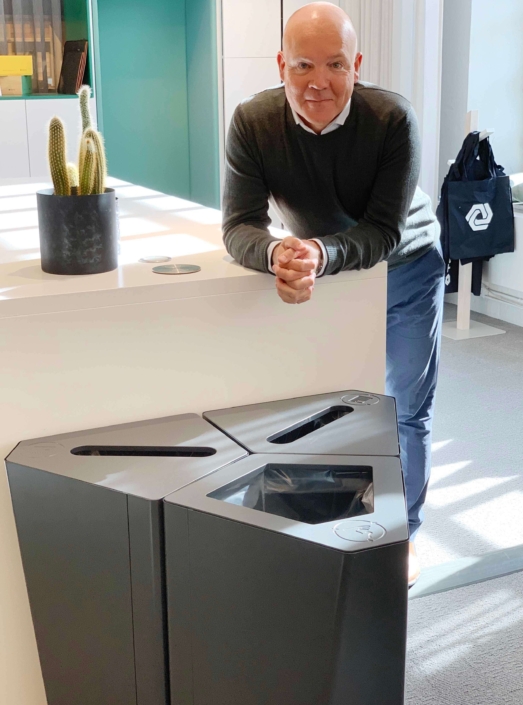 Vi på TreCe hade runt 2010 tankar på att utveckla vårt sortiment inom källsortering. Vi såg en stor marknad för en mer designad produkt i och med att miljömedvetenheten seglade högre upp på företags agendor och vi ville se en produkt som stack ut mot de funktionsfokuserade återvinningskärlen som fanns på marknaden. I samband med det blev vi kontaktade av Annica Doms då studerande på Luleå Tekniska Universitet med en förfrågan om att designa just en källsorteringsmöbel som hennes examensarbete.