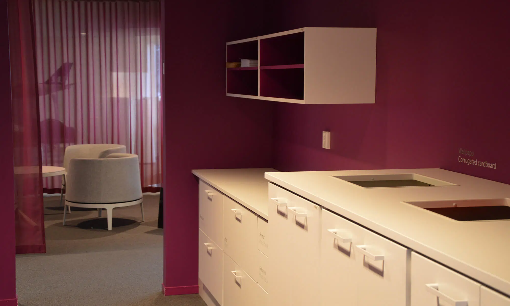 Om du önskar integrera en dokumentförstörare i bänkskivan, kontakta TreCe för mer information om mått och pris.