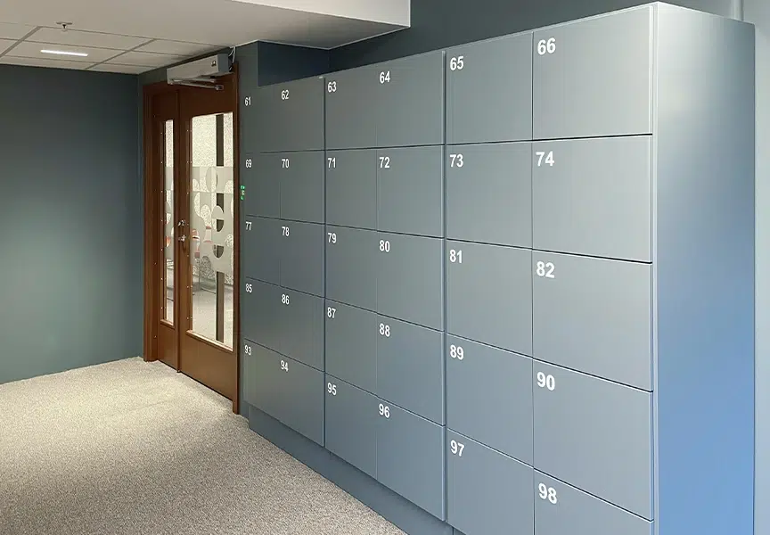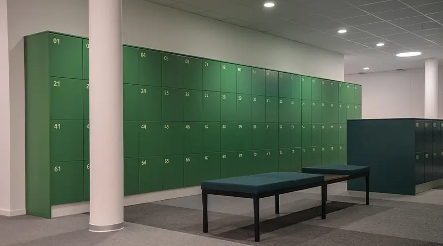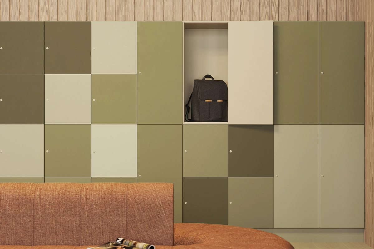 Låstyper: Skåplås, hänglåsbeslag, kodlås och RFID-lås (EM & Mifare) samt push-to-open.
