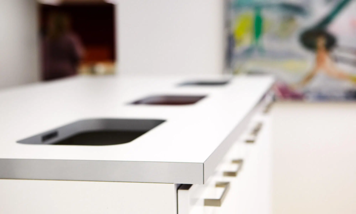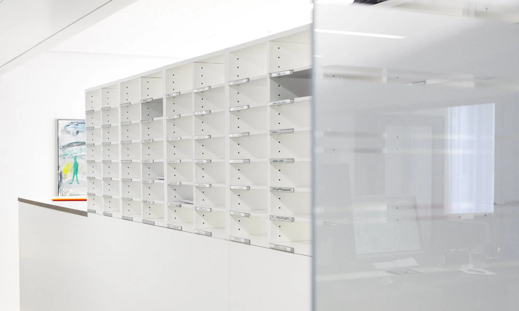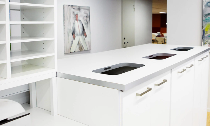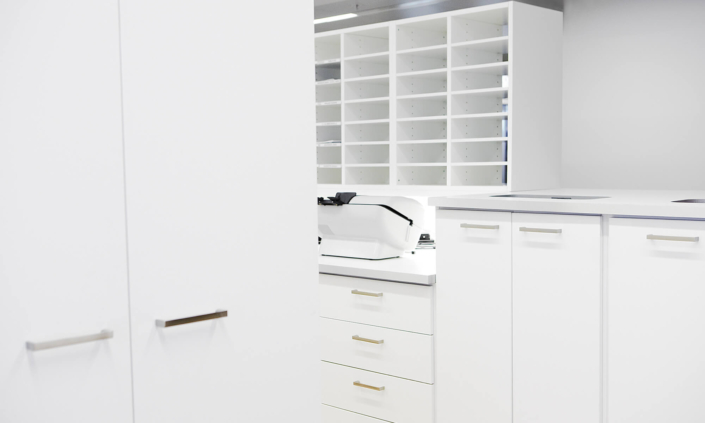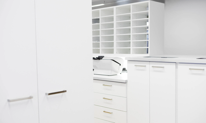 Kungsledens devis är – möjligheternas fastighetsbolag – och deras kärnvärden är närvarande, nyskapande och förenklande. Med detta i åtanke skapades ett varmt, modernt och funktionellt kontor med genomtänkt inredning från entrén, via postsorteringen in i skrivarrummen. TreCe var med hela vägen från ritning till färdigt resultat. I de flesta fall hade våra produkter tillräcklig inbyggd flexibilitet för att monteras i sitt grundutförande. Men när en miljödisk behövde få nya mått hjälpte vi givetvis gärna till. Slutresultatet blev ett effektivt kontor där alla möbler lyfter varandra till en vacker helhet.