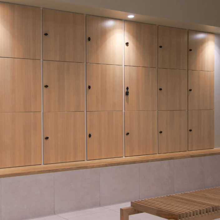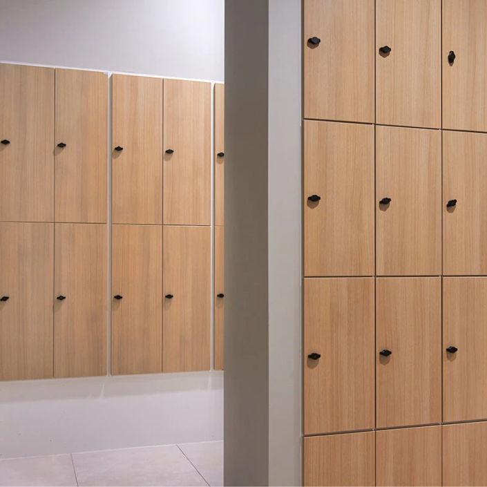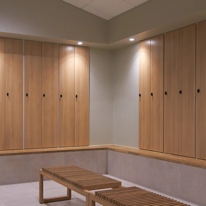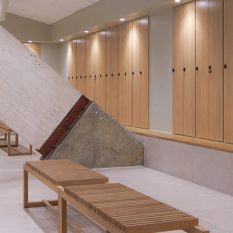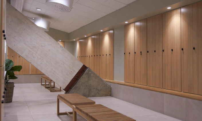 GLTK i samband med den största om- och tillbyggnationen som gjorts byggde nya omklädningsrum. TreCe har levererat förvaringsskåpen till omklädningsrummet som med vackra ekfanerade fronter sätter stilen.